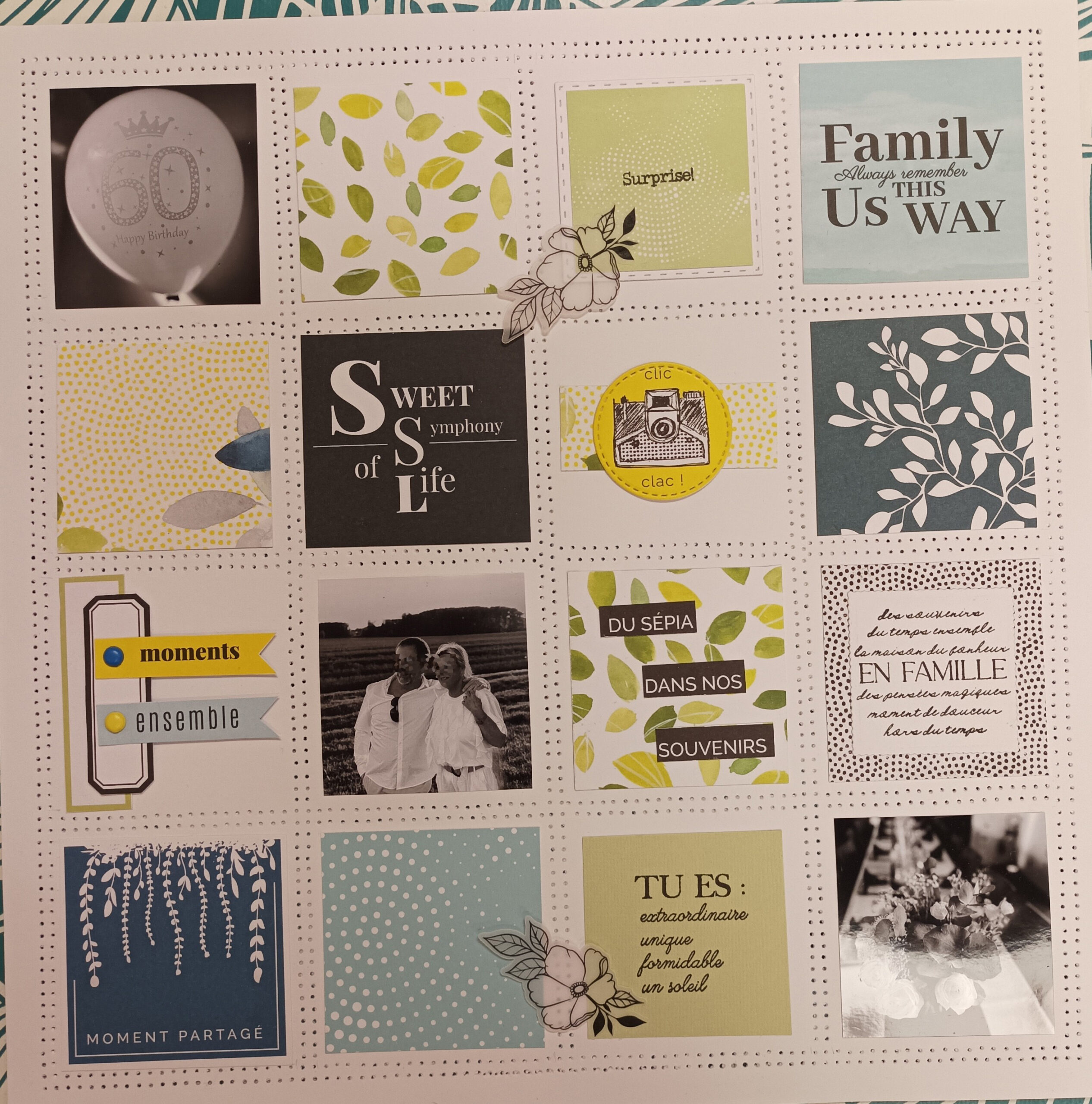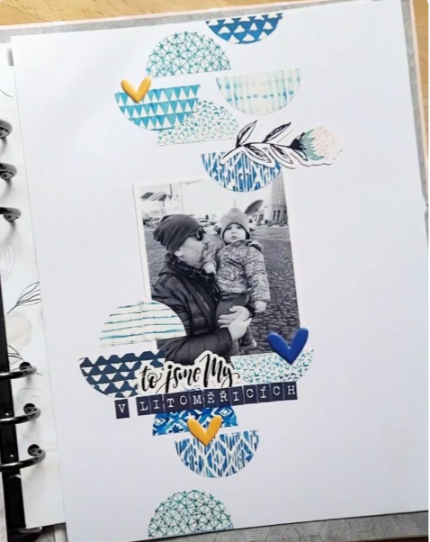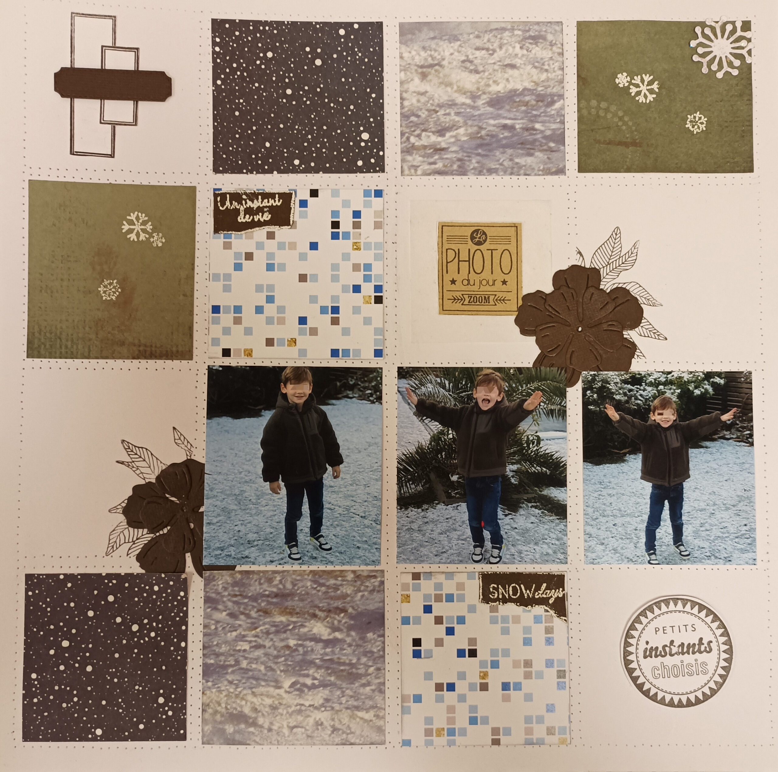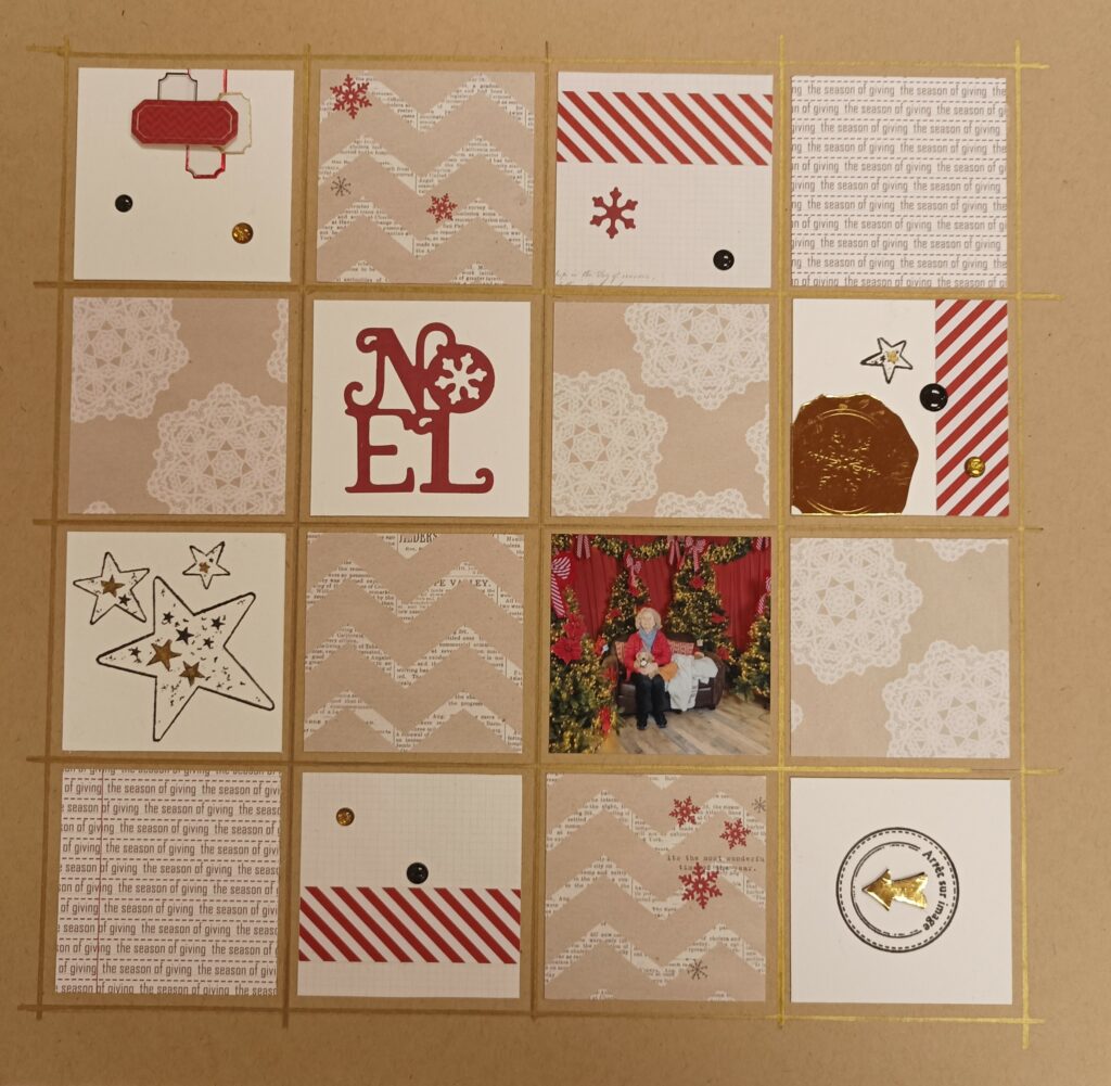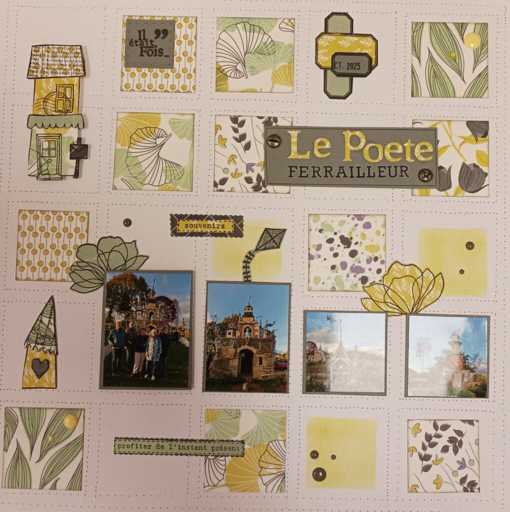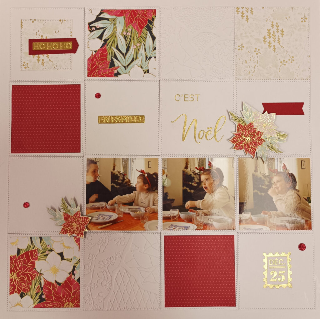 Pour l’atelier de mardi prochain, je vous propose une page qui m’a tapée dans l’œil et je crois que je ne suis pas la seule. C’est la magnifique page gagnante de Sandra Lepage Arthur du challenge de Novembre de la Fée du Scrap