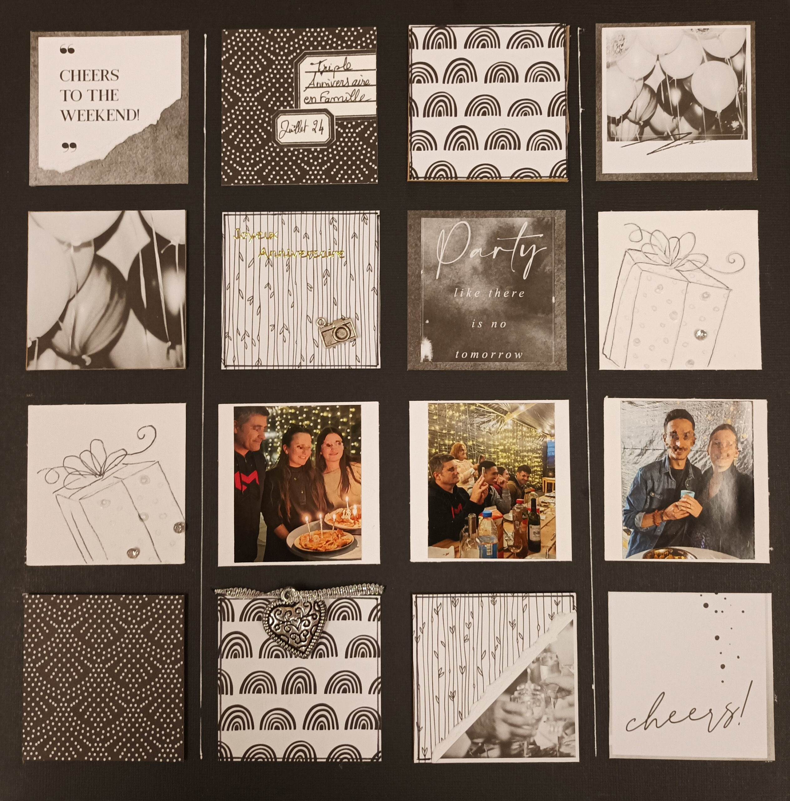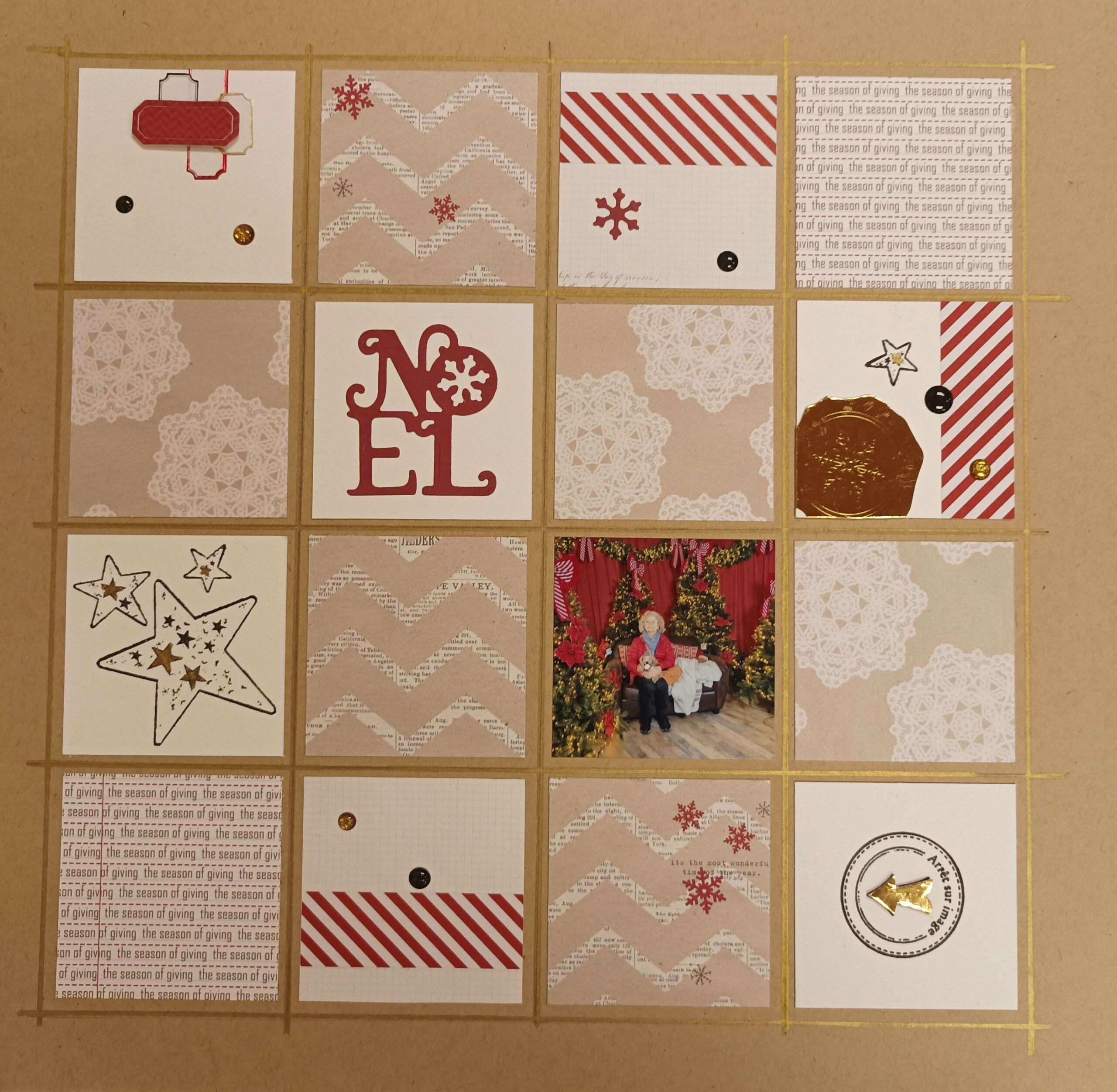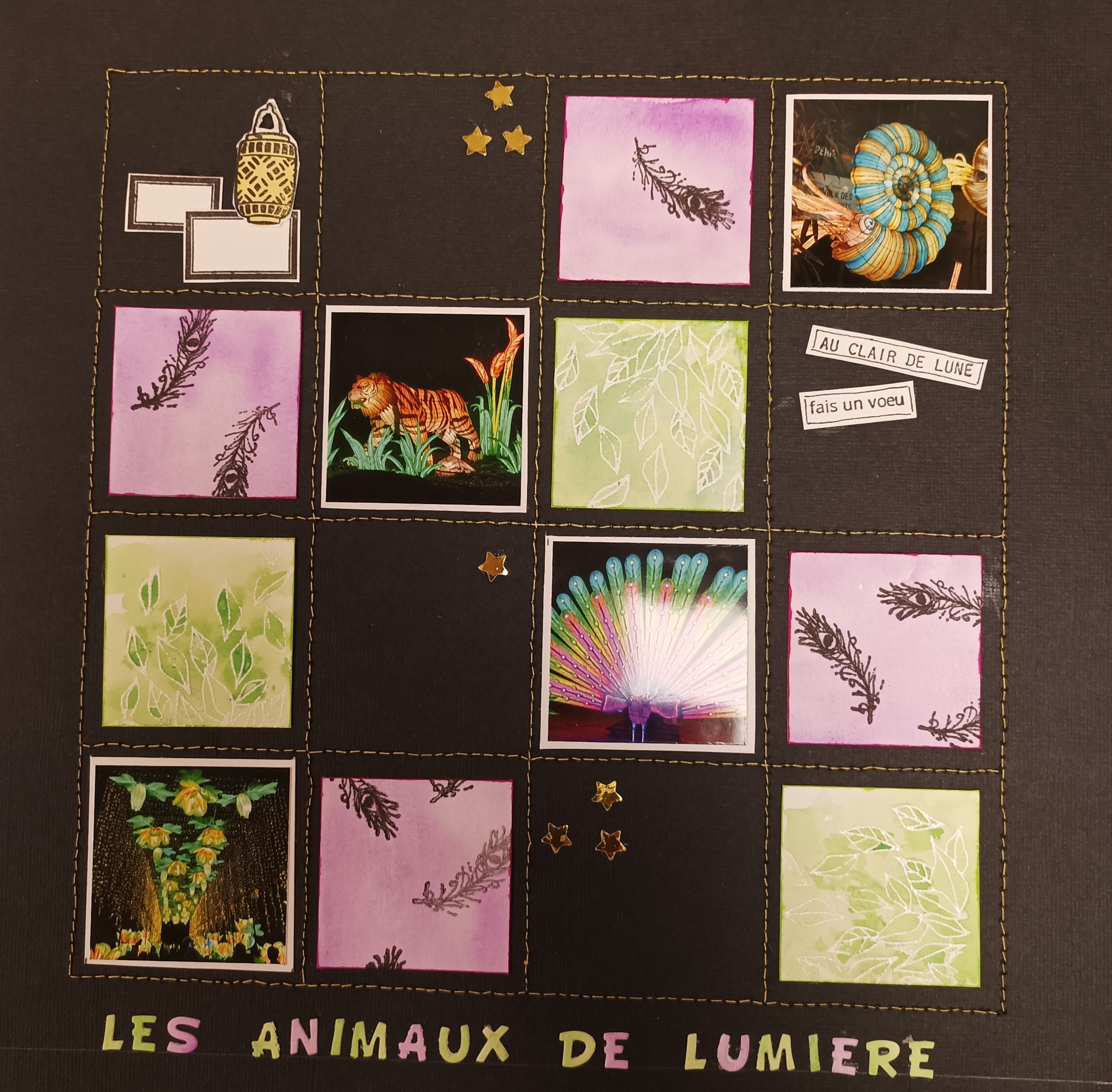 Réaliser une bordure de page sur les 4 côtés, avec des étiquettes tamponnées (ou découpées) comme sur le modèle