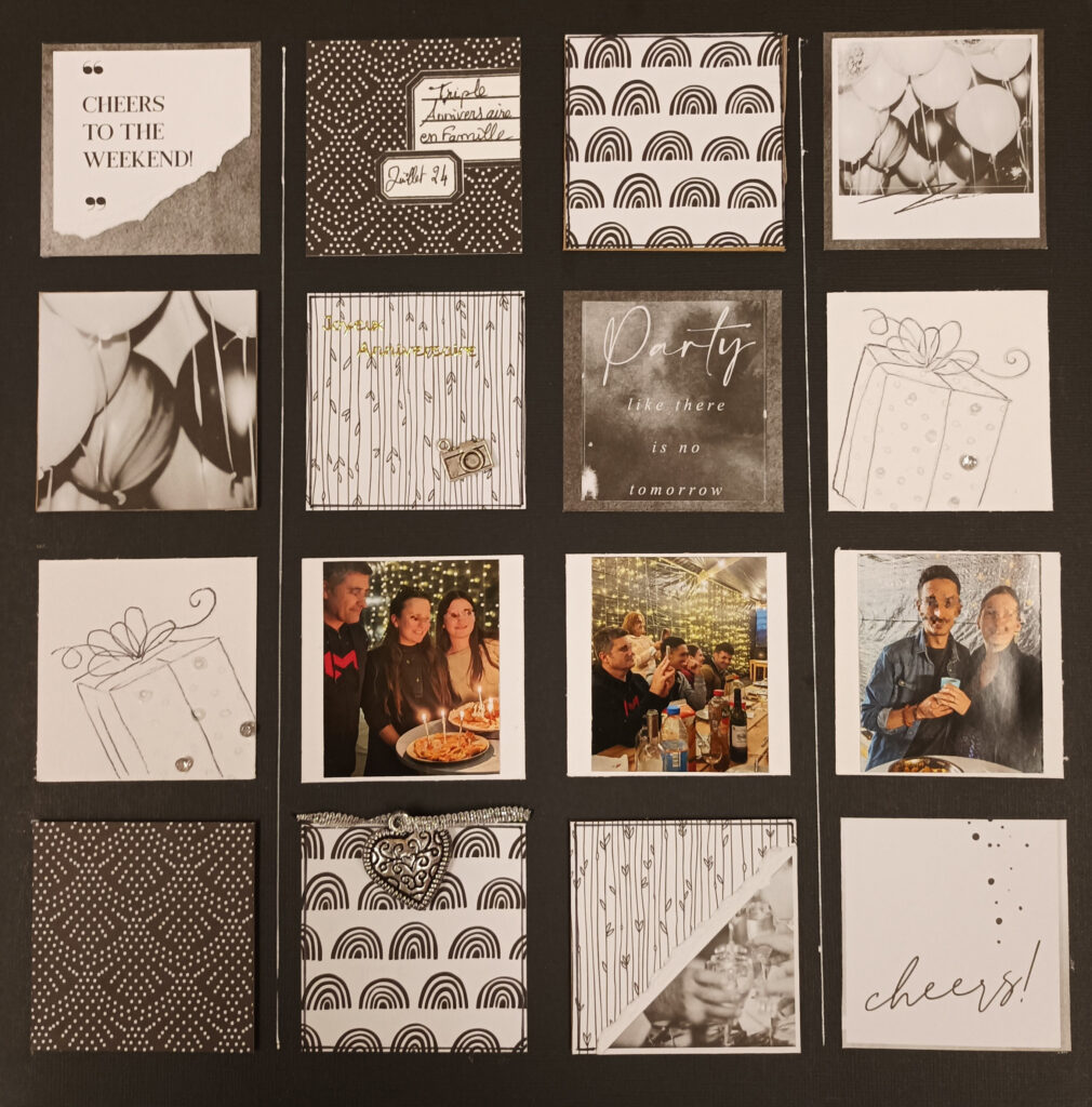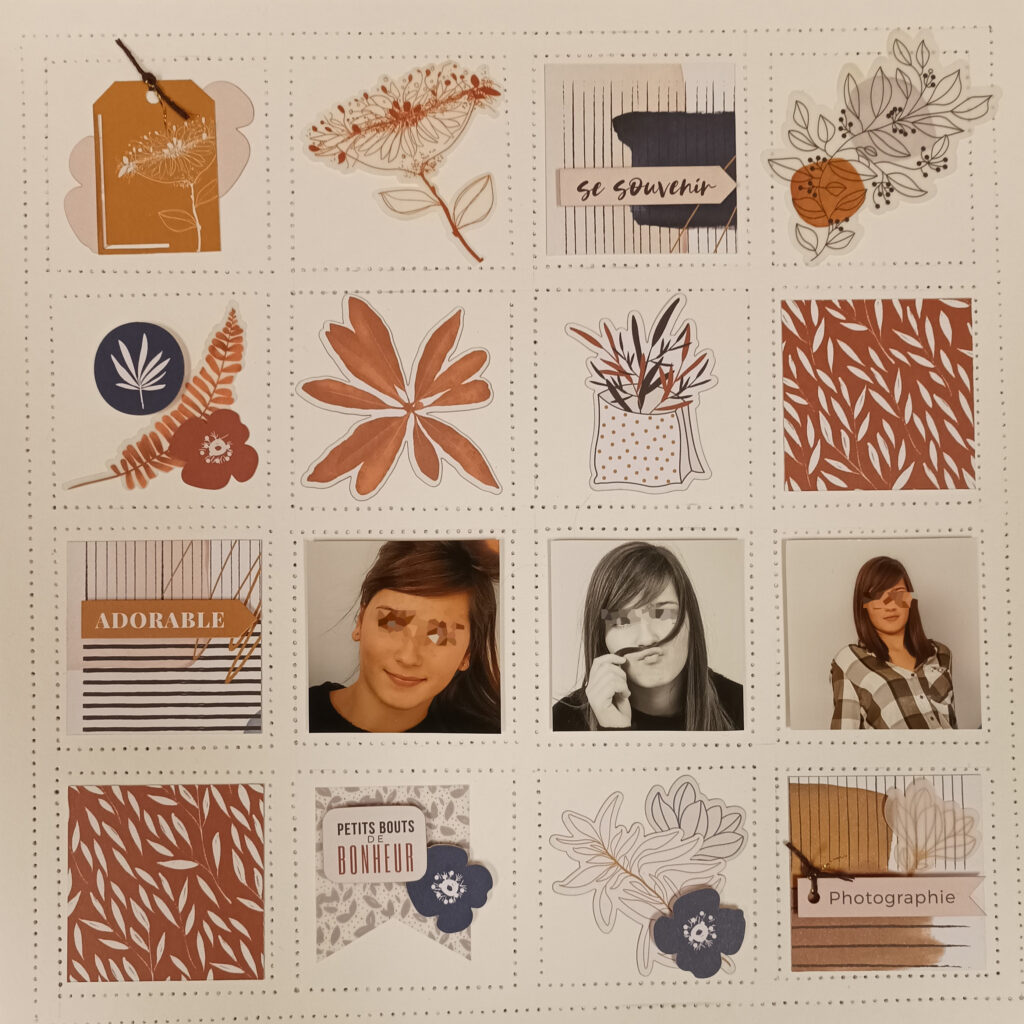 “Coucou les filles, et merci d’avoir voté pour ma page. Je vous ai concocté une petite grille de mots mêlés. J’y ai caché des mots de scrap, qu’il faudra utiliser partiellement ou en totalité, pour réaliser votre page. D’autres mots se sont glissés dans la grille, à vous de voir s’il vous serviront ou pas. Amusez vous bien, il y en a 31 au total.